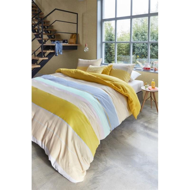 Lenjerie pat galbena satinata model Kata Yellow conține un sac pentru pilotă ce are dimensiunea 200x200/220 cm și două fețe de pernă cu dimensiunea 60x70 cm. Calitatea acestei lenjerii de pat este dată de densitatea mare a fibrei de bumbac (peste 200 TC) de pat combinată cu ultima tehnologie de print - digital print - fac acest produs unul de înaltă calitate. Modelul lenjeriei de pat Kata Yellow este unul linear benzi late galbene sau turcoaz orizontale, model ce se regăsește și pe fețele de pernă. Bumbacul superior folosit la această lenjerie de pat se simte la atingerea acestui produs, iar tratamentul "breathable" ce caracterizează prin "respirarea - aerisirea" corpului pe timpul nopții pentru a conferi un somn cât mai odihnitor.