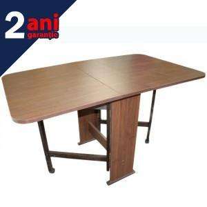 Masa plianta realizata cu structura din lemn masiv fag, blaturile fiind din pal melaminat 18 mm grosime, disponibila in nuanta de fag, cires si wenge. Masa are prevazute colturile exterioare rotunjite.