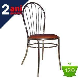 Scaun de bucatarie realizat pe structura metalica, cu sezut tapitat cu piele ecologica in nuante de maro si negru. Greutatea maxima admisa: 120 Kg.